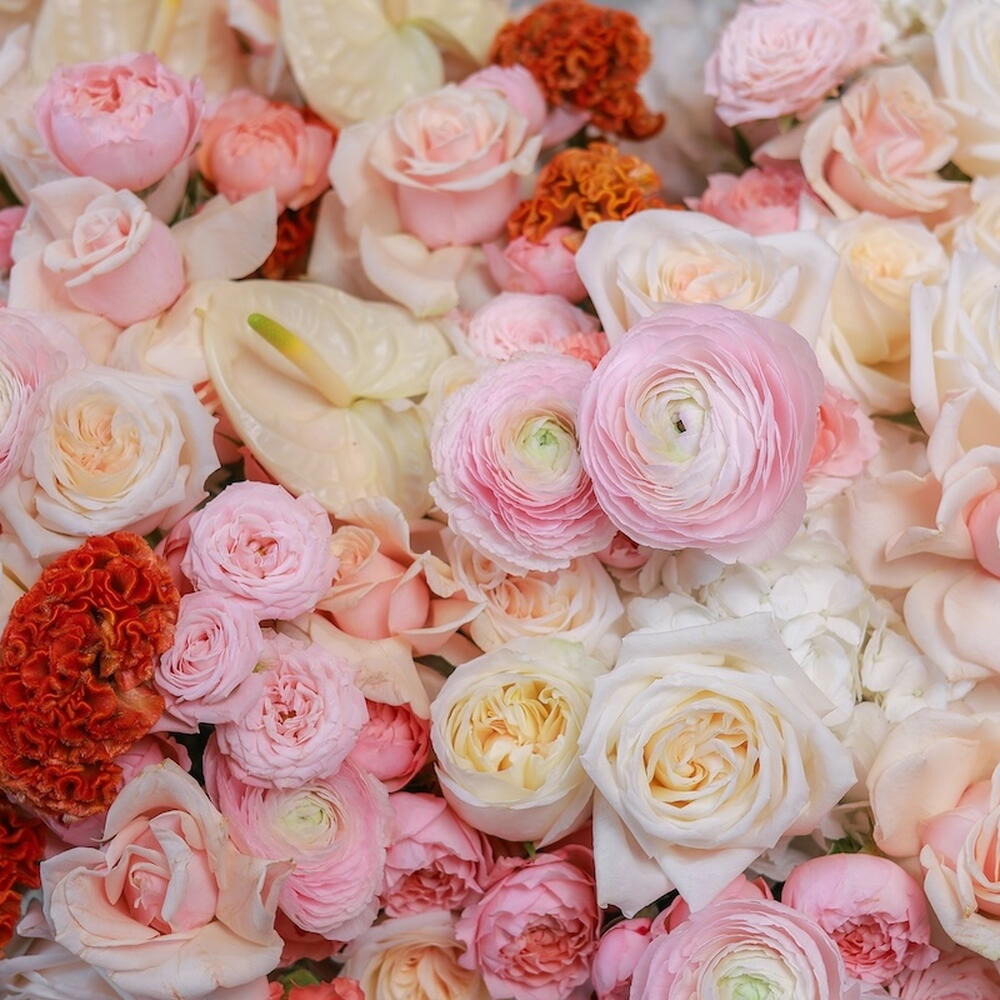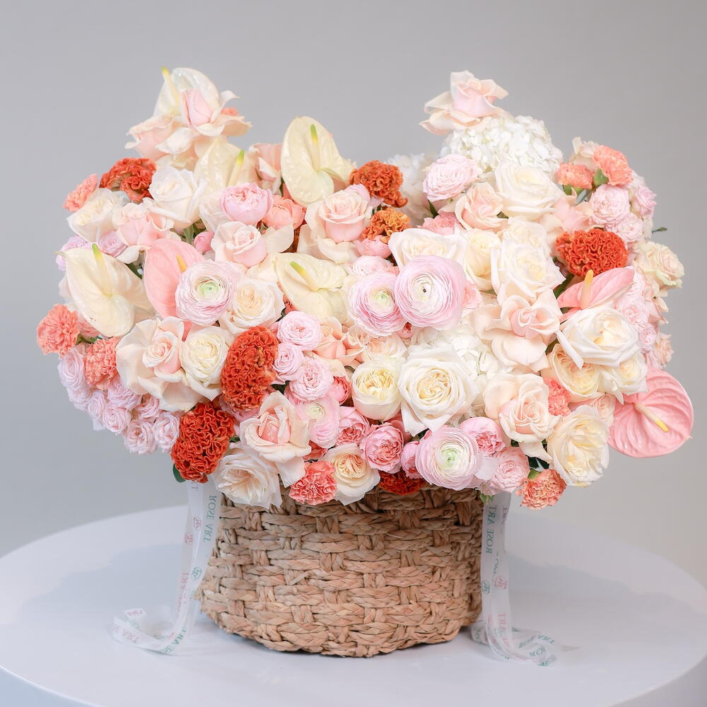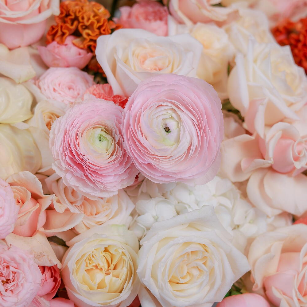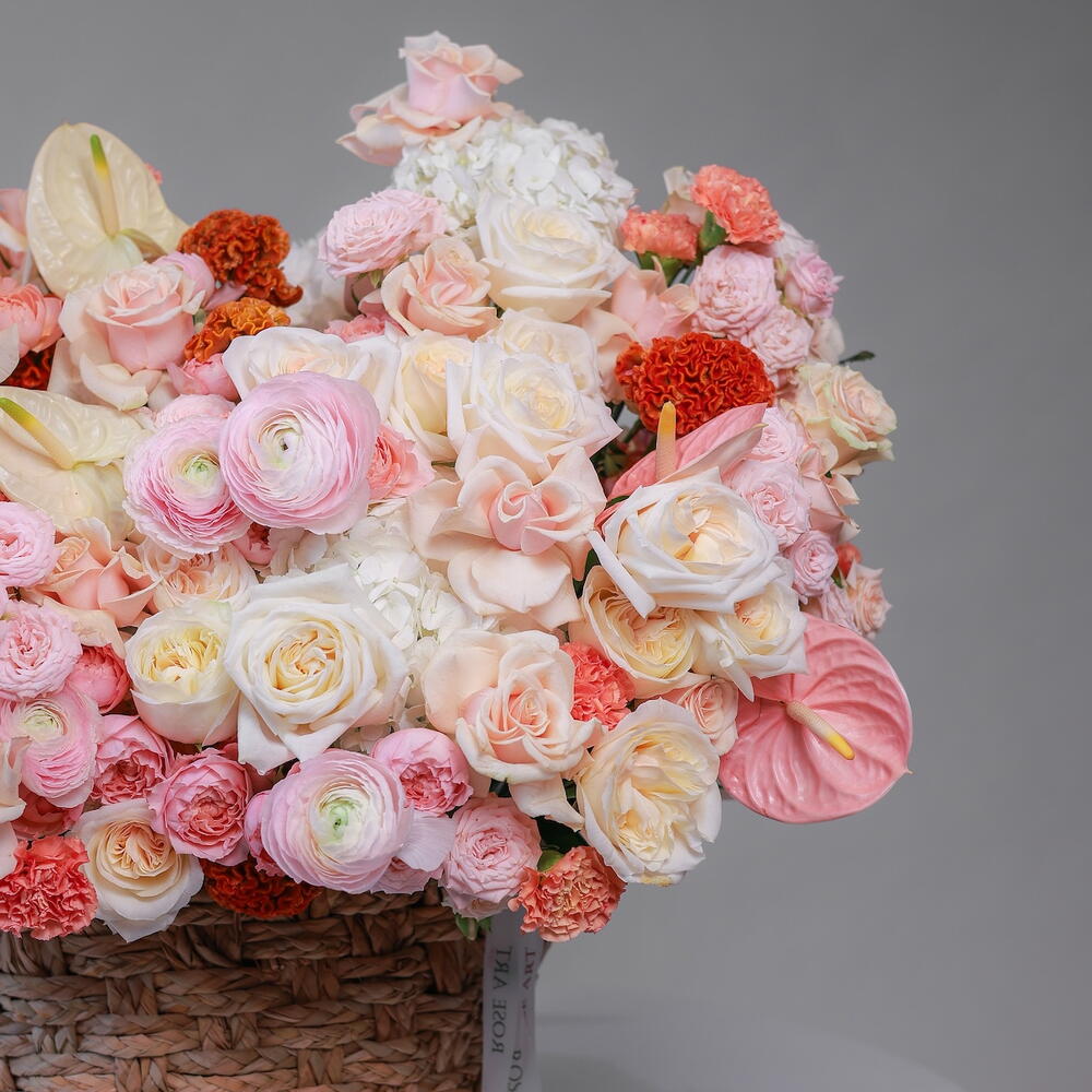 Hydrangea - 10 шт. Антуриум - 10 шт. dianthus - 20 шт. ranunculus - 5 шт. celosia - 10 шт. rose bombastic - 20 шт. rose talea - 45 шт. rose julietta - 25 шт. rose ohara - 20 шт.