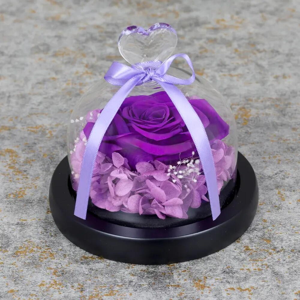 Описание товара: Фиолетовая стабилизированная роза в колбе Упаковано в чёрную коробку