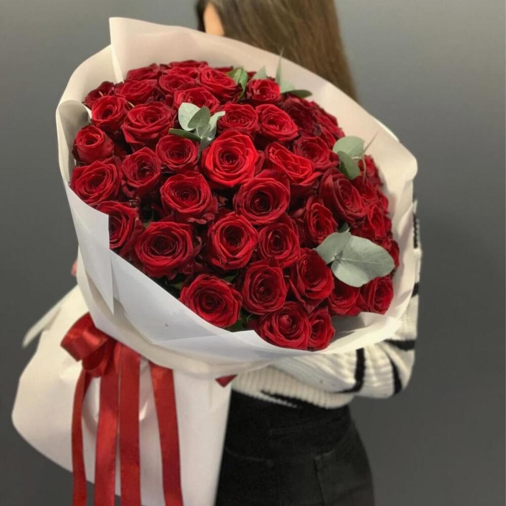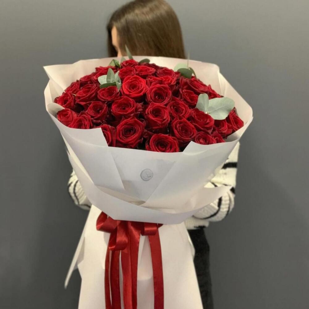 Red rose - 50 шт. eucalyptus leaves - 10 шт.