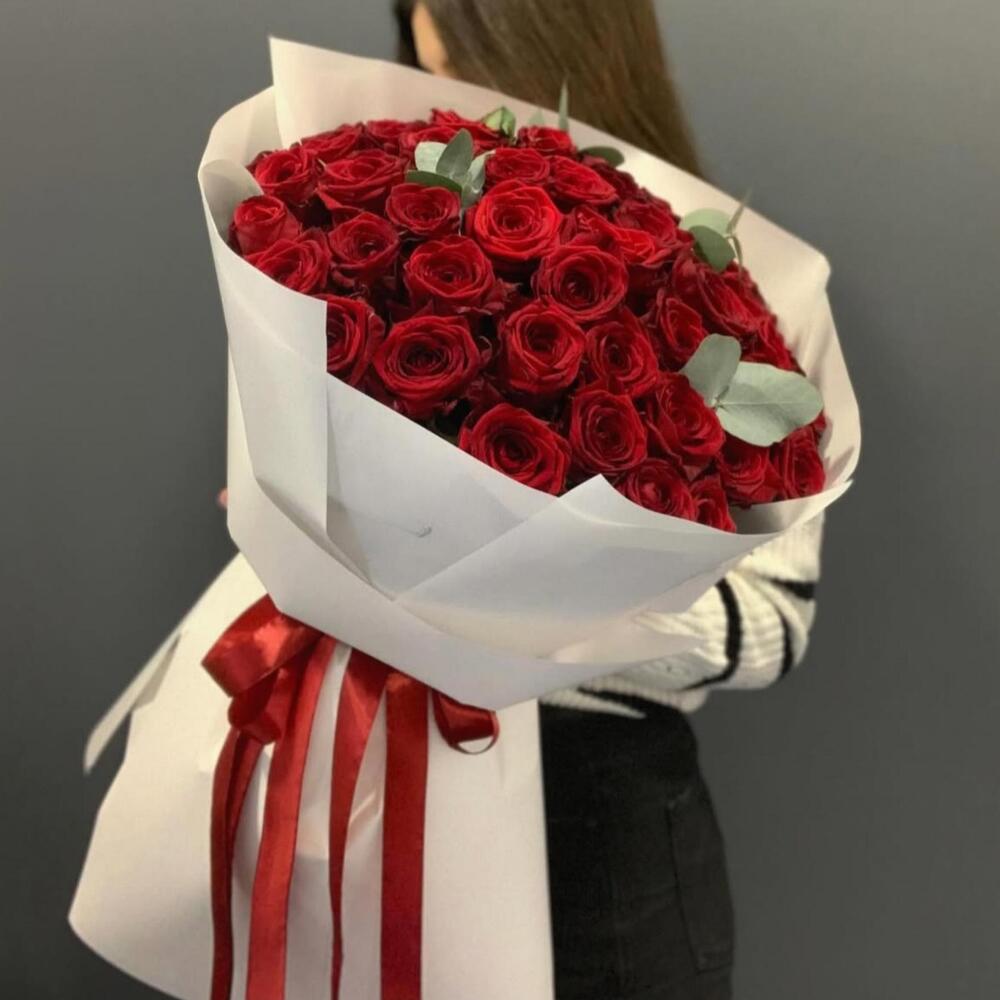 Desire – 50 красных роз Роскошный букет из 50 отборных красных роз, упакованный в элегантную белую бумагу и завершённый яркой красной атласной лентой. Вневременный символ любви, страсти и восхищения. Поводы: – Годовщина – Предложение – День святого Валентина – Романтический сюрприз – Просто так Идеально для: – Выражения глубоких чувств – Празднования любви и важных событий – Создания незабываемых воспоминаний Изысканно выполнено вручную от Majd Flowers.