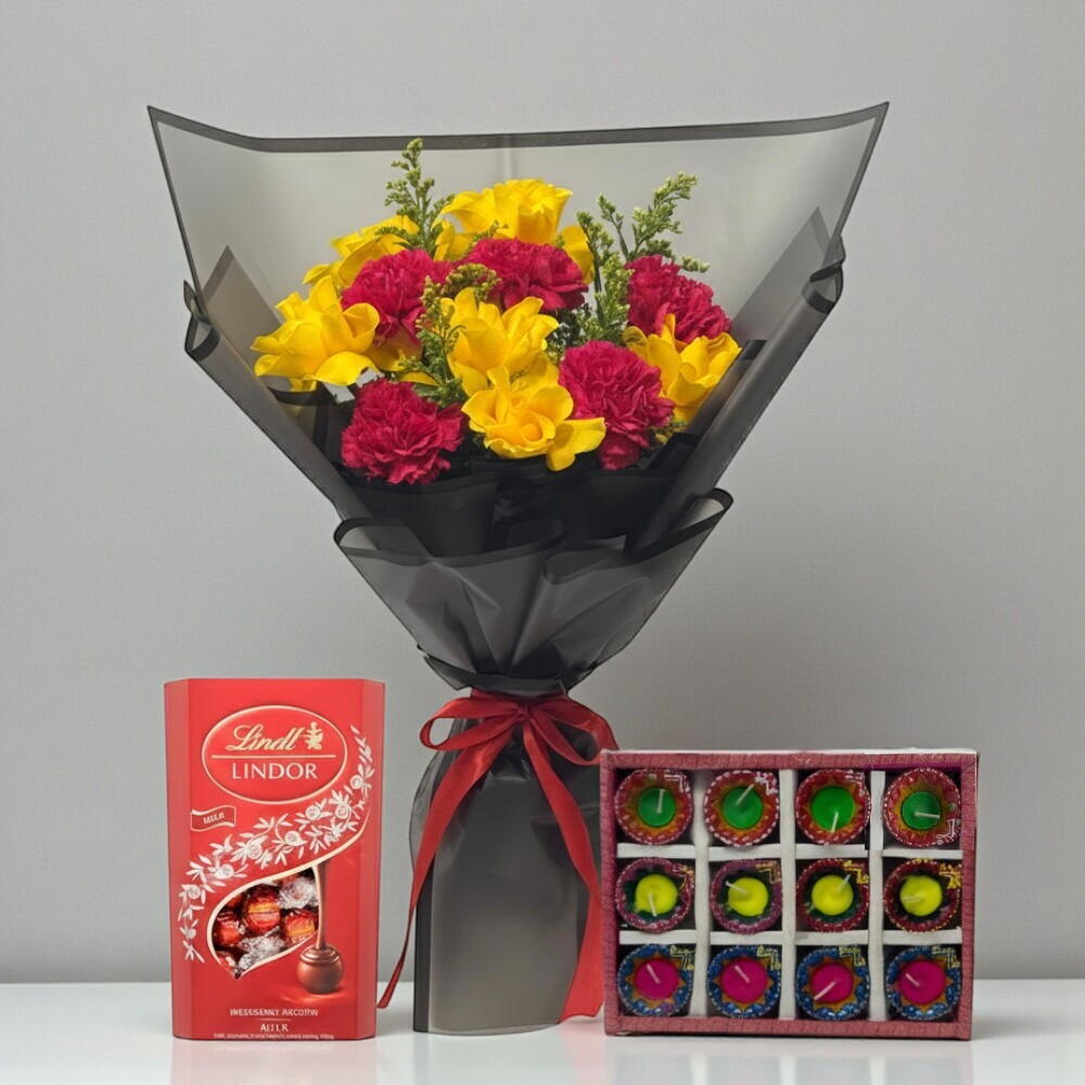 Diwali Lights – подарочный набор «Любовь» – цветы, Lindt – 12 дий | доставка в тот же день, Дубай