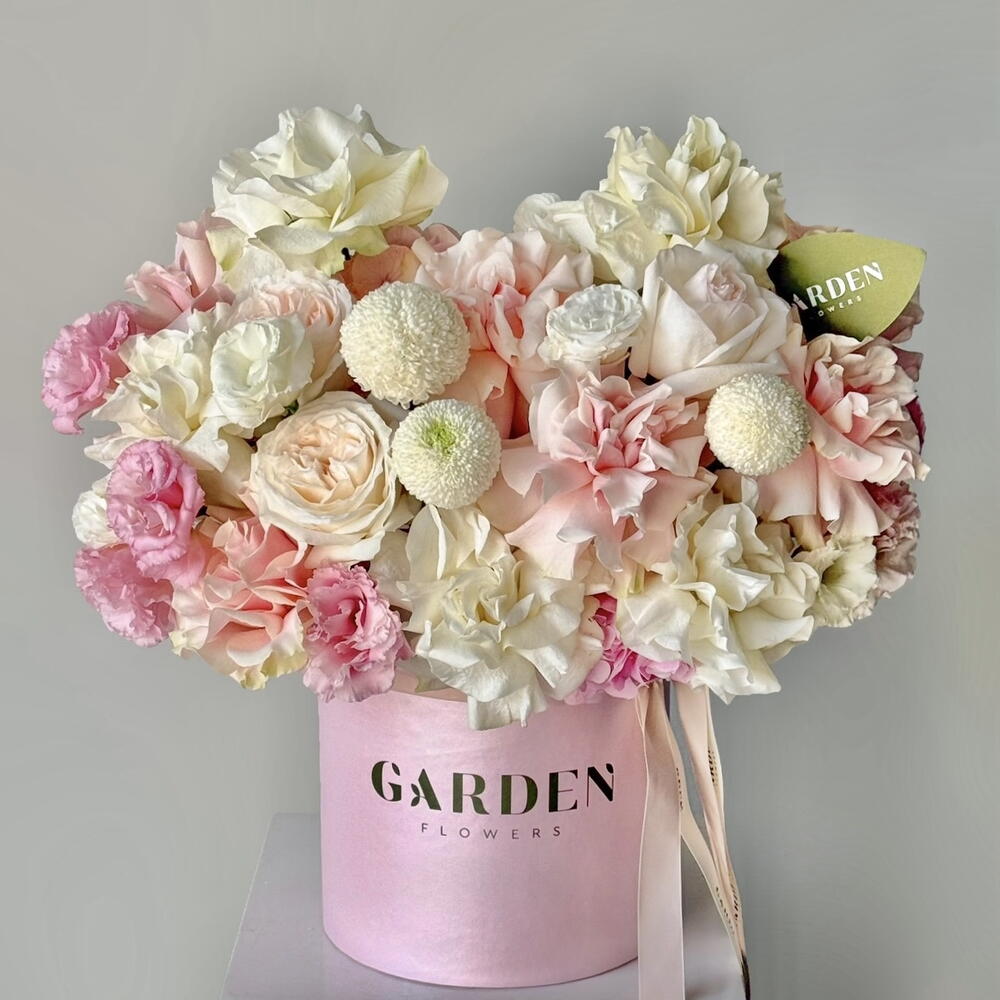 «Doha» box (size S) — French rose, Ohara rose, eustoma