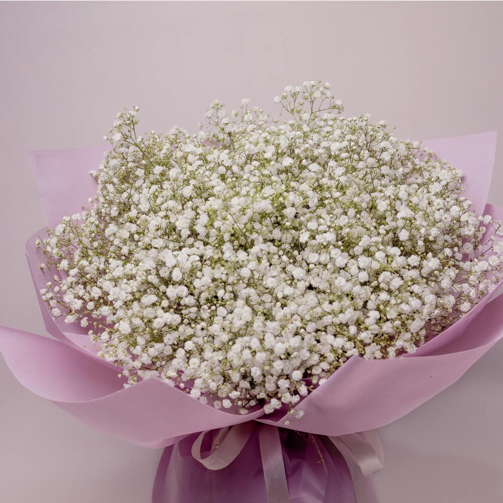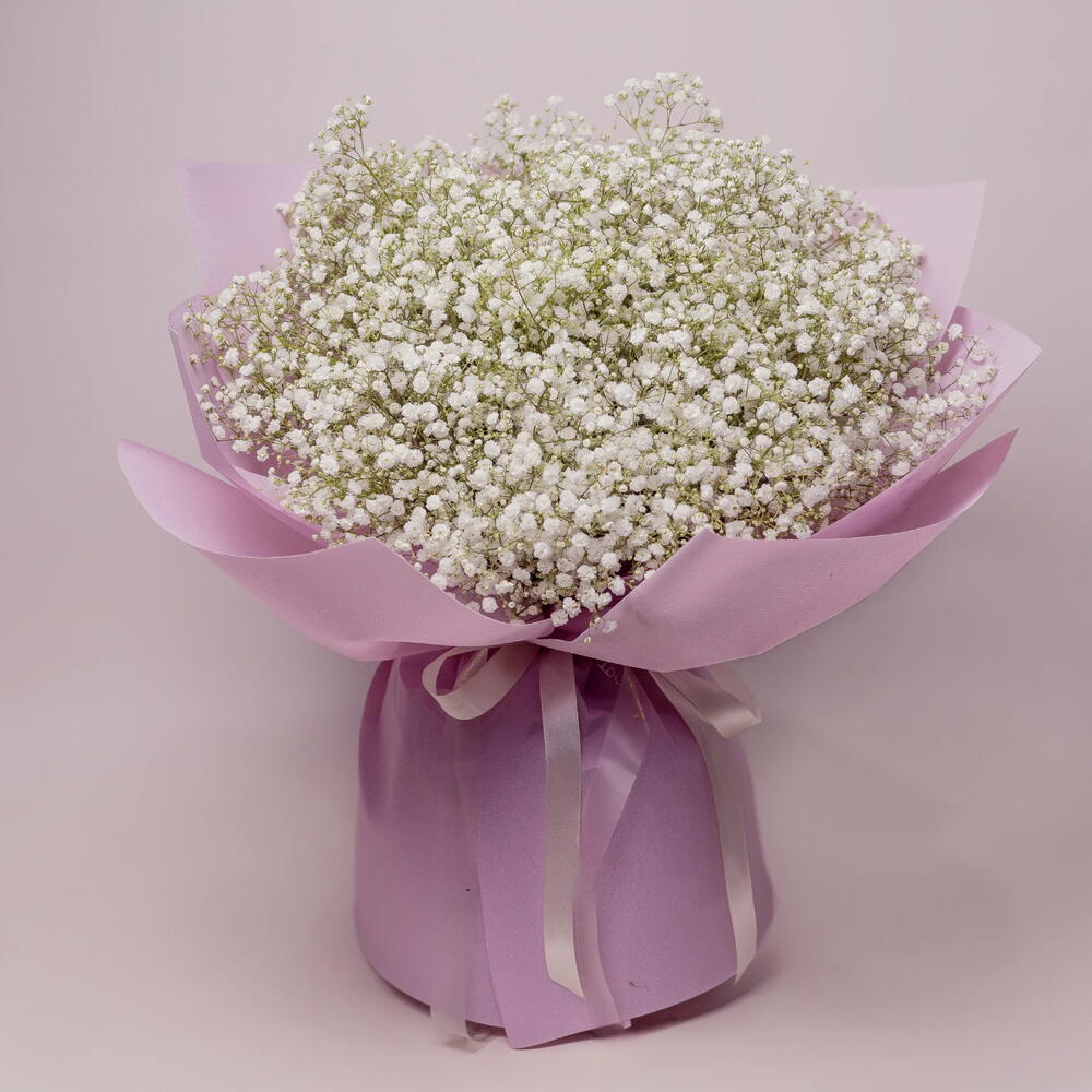 \Нежная и одновременно эффектная композиция, созданная, чтобы привлекать внимание тонкой элегантностью. В этом букете — безупречная белая гипсофила, завернутая в мягкую розовую бумагу, что создаёт чистую, современную и готовую к бутику подачу с ноткой игривости. Воздушные белые цветы передают чистоту, грацию и вне́временное очарование, а розовая обёртка добавляет тепла, женственности и современного акцента. Идеально для дней рождения, юбилеев, романтических жестов или продуманного подарка «просто так». Идеально как для него, так и для неё, этот букет дарит фотогеничный, роскошный и запоминающийся флористический опыт — стильное и утонченное выражение элегантности и индивидуальности.