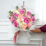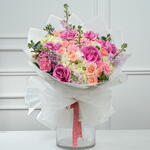 Прекрасная смесь эквадорских роз и белых гортензий в нежных румяно-розовых тонах. Оформлена мини-розами, гвоздиками и свежими сезонными цветами. Идеально подходит для дней рождения, годовщин и в качестве особого подарка. Свежие цветы аккуратно уложены для элегантного вида.