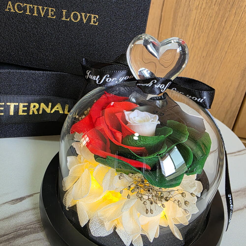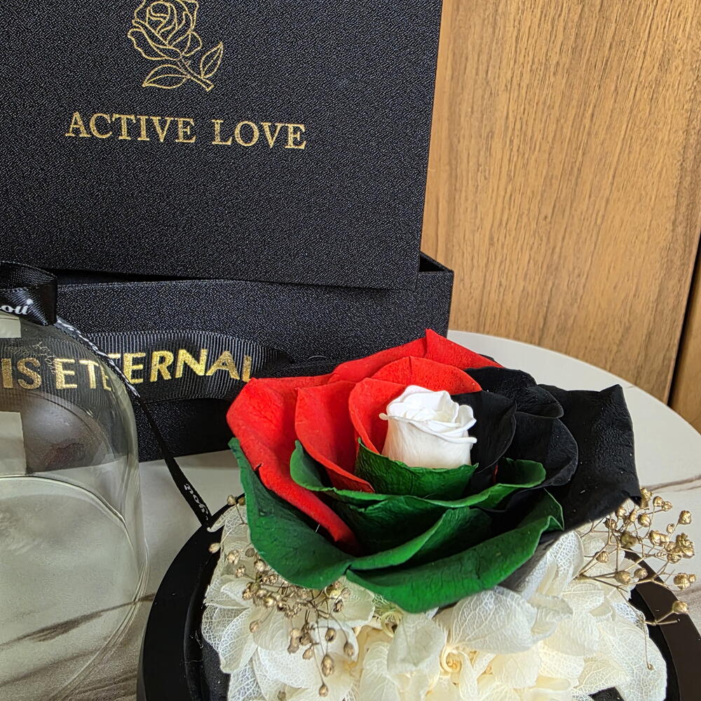 вечная роза цвета флага ОАЭ в стеклянном куполе - 1 шт.