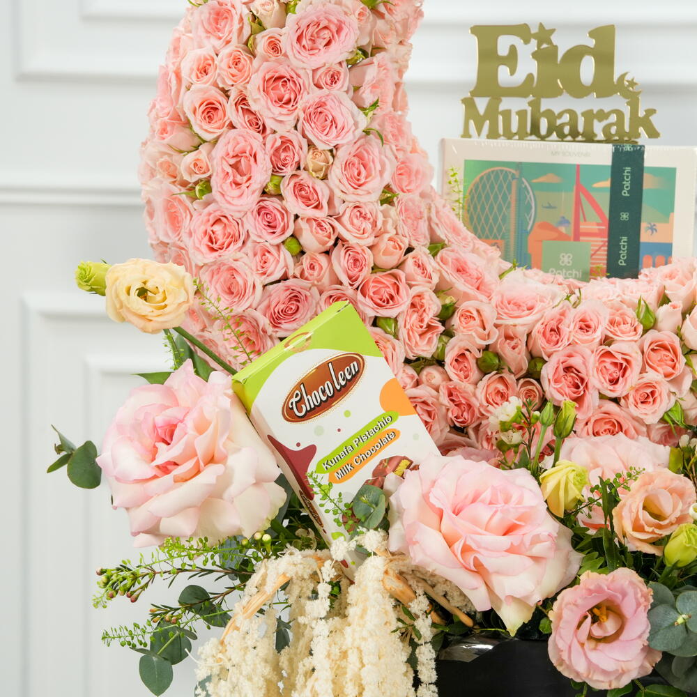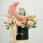 Отпразднуйте Ид роскошной подарочной коробкой с цветами, в состав которой входят свежие розы, лизиантус и изысканная зелень. 🌙 Этот праздничный цветочный набор к Иду с шоколадом Patchi — идеальный подарок для семьи, друзей и близких. Красиво оформлен в премиальной черной коробке с декором Eid Mubarak, придающим праздничный акцент. Закажите этот цветочный подарок к Иду в ОАЭ для незабываемого и элегантного праздника.