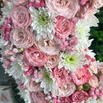 Gypsophila - 4 шт. Chrysanthemum white - 7 шт. bombastic spray rose - 13 шт. листья рускуса - 5 шт. eucalyptus leaves - 3 шт. акриловый поднос - 1 шт. коробка patchi 250 грамм - 1 шт.