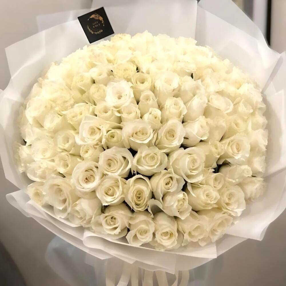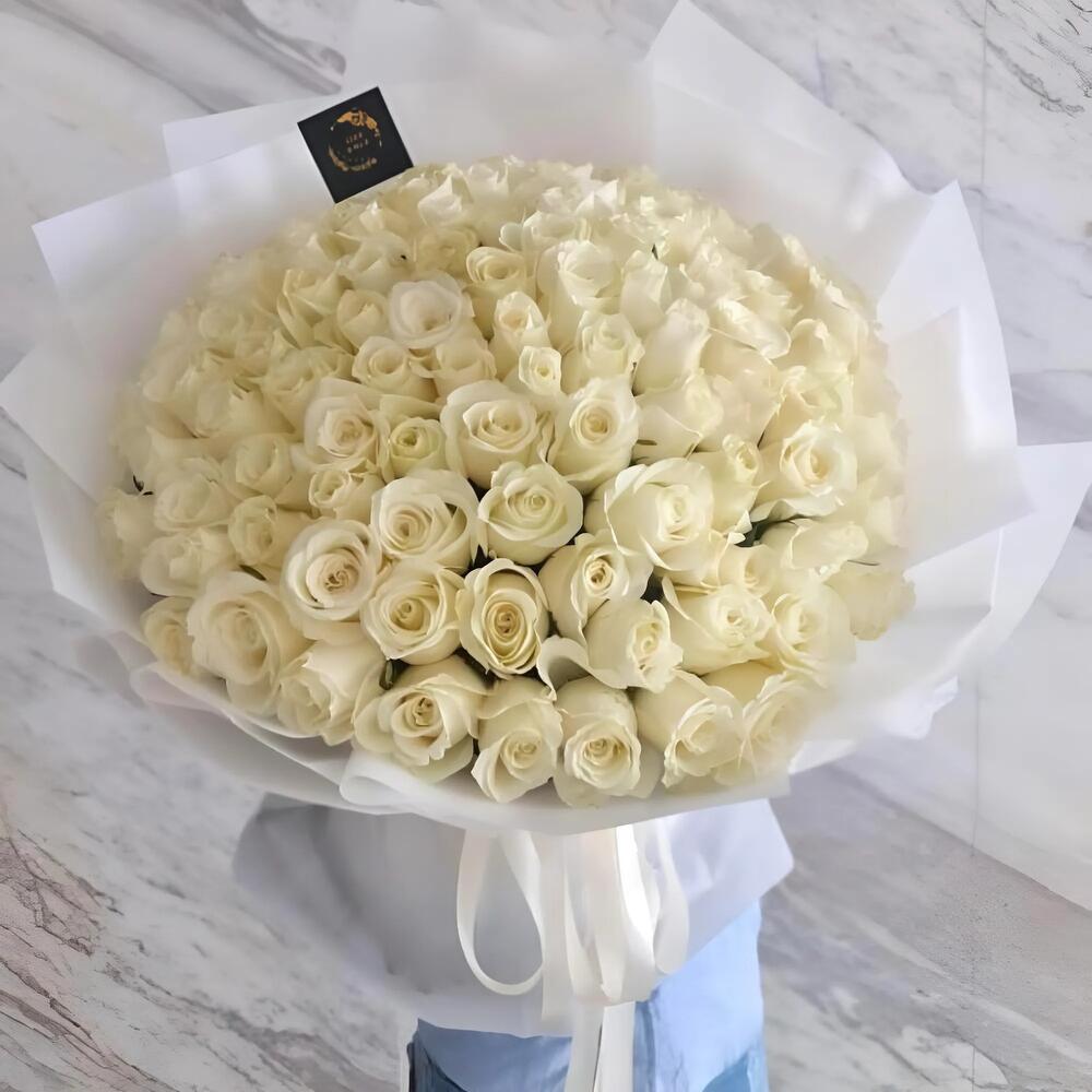 Представляем букет Eksvdo White Elegance – захватывающую дух композицию из 99 девственно-белых роз, символизирующих чистоту, восхищение и непреходящую элегантность. Этот букет, искусно связанный вручную и упакованный в высококачественную белую бумагу, дополнен двумя классическими белыми атласными лентами и декоративными белыми нитями-рабинками, придающими букету изысканный шарм. Благодаря своему внушительному размеру и романтичной эстетике этот цветочный шедевр идеально подходит для дней рождения, годовщин, свадеб, признаний в любви или просто для того, чтобы сделать чей-то день незабываемым и торжественным. Инструкция по уходу: Чтобы букет дольше сохранял красоту и красоту, обрежьте стебли под углом острым ножом или садовыми секаторами перед тем, как поставить цветы в вазу. Используйте холодную чистую воду и меняйте её ежедневно. Обновляйте срезы стеблей каждый раз, чтобы поддерживать оптимальную влажность. Храните букет в прохладном месте, вдали от прямых солнечных лучей, отопительных приборов и сквозняков. Не ставьте его на кухне или рядом с фруктами, так как это может сократить срок жизни цветов. При правильном уходе ваши белые розы будут излучать изящество и свежесть в течение многих дней.