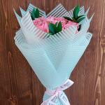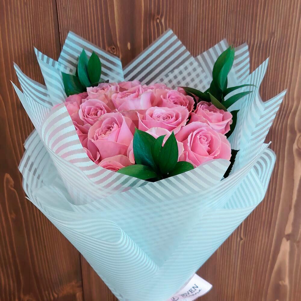 Нежный букет из розовых роз, завернутый в мягкую пастельную упаковку. Розовые розы символизируют нежность, восхищение и чистую привязанность, поэтому этот букет станет идеальным подарком на дни рождения, годовщины или просто чтобы выразить теплые чувства. Полосатая упаковка добавляет современный и стильный штрих, при этом композиция остается легкой и элегантной. Чтобы дольше наслаждаться его свежестью, поставьте букет в чистую воду, обновляйте срез стеблей каждые 2 дня и держите вдали от прямых солнечных лучей.