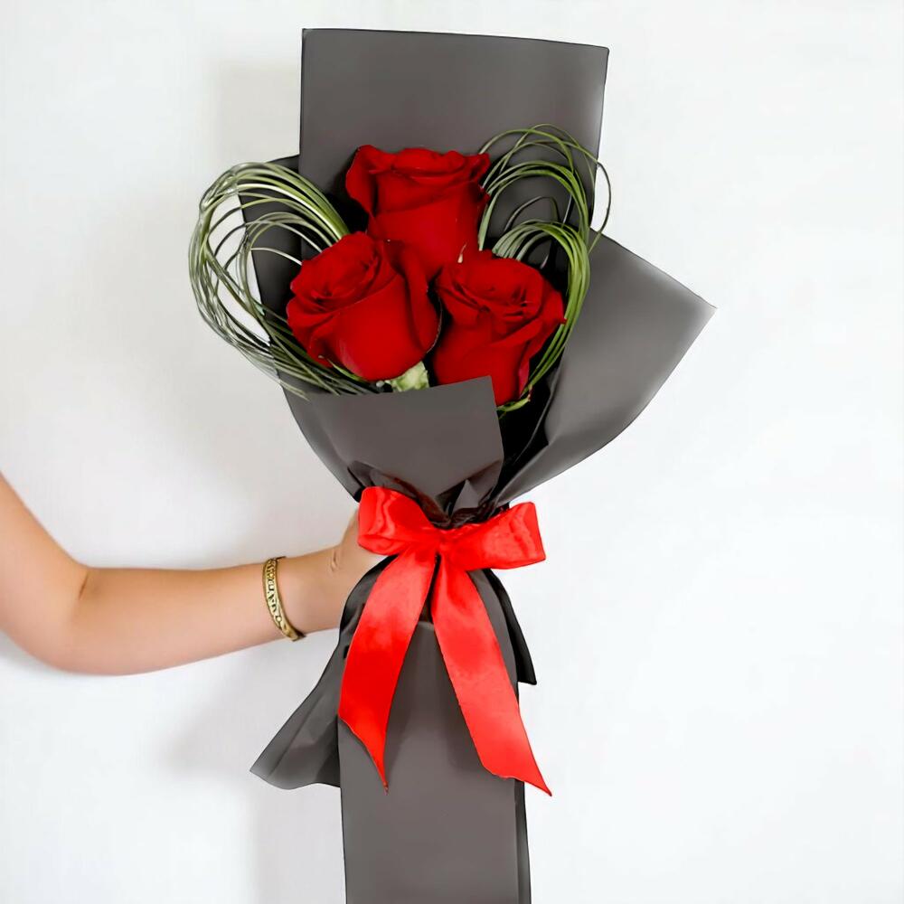 3 red roses designer bouquet