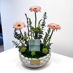 Отпразднуйте любой особенный момент с элегантной композицией из гербер — продуманным и утонченным цветочным подарком, который сочетает красоту и эмоции. В композицию входят пастельно-персиковые герберы, ярко-зелёные хризантемы, пышный эвкалипт и декоративная купюра в качестве центрального элемента; эта современная аранжировка идеально подходит для дней рождения, выпускных, достижений или в качестве стильного корпоративного подарка. Поставленная в белом керамическом горшке геометрической формы, она придаёт любому пространству элегантность и смысл. Инструкции по уходу: Размещайте композицию в прохладном, затенённом месте, чтобы сохранить свежесть цветов. Избегайте воздействия прямых солнечных лучей и сквозняков. Если в горшке используется флористическая пена, добавляйте небольшое количество воды каждые два дня, чтобы она оставалась влажной. Не удаляйте декоративную купюру, если это не предусмотрено. Правильное увлажнение и размещение помогут сохранить цветы яркими и продлить их свежесть.