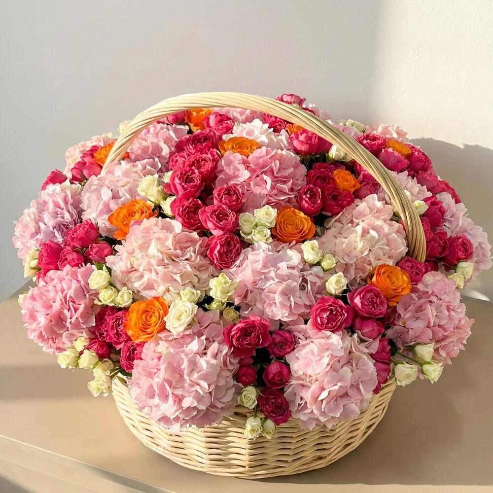 hydrangea pink - 20 шт. spray rose white - 20 шт. juliet cerise - 20 шт. конфиденциальная роза - 10 шт.