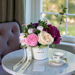 ✨ Премиальные живые цветы, которые сохраняют свежесть в течение года ✨ «Элис», наша миниатюрная цветочная композиция, представляет собой восхитительное сочетание биоконсервированных садовых и классических роз, гортензий и калл – идеальный подарок для различных случаев. Гарантированное долговременное счастье! Эта композиция изготовлена исключительно из 100% натуральных цветов, которые были биоконсервированы и сохраняют свежесть до одного года без полива и ухода. Обратите внимание, что каждая композиция создается нашими штатными флористами, поэтому возможны естественные вариации цвета, формы и состава.