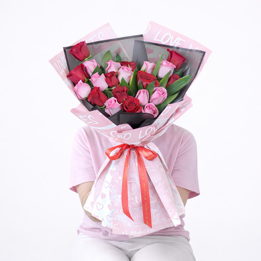21 свежая роза премиум-класса в изысканном сочетании красных и розовых оттенков, символизирующая любовь и восхищение. Украшена тремя стеблями листьев «Песни Ямайки» для современного тропического колорита и дополнительной глубины. Художественно упакована в дизайнерскую оберточную бумагу черного цвета с тематикой «Любовь» для утонченного контраста. Завершает композицию насыщенная красная лента, добавляющая смелый и романтический акцент. В комплекте с шоколадными конфетами ручной работы «Я люблю тебя», завершающими этот жест ноткой роскоши.