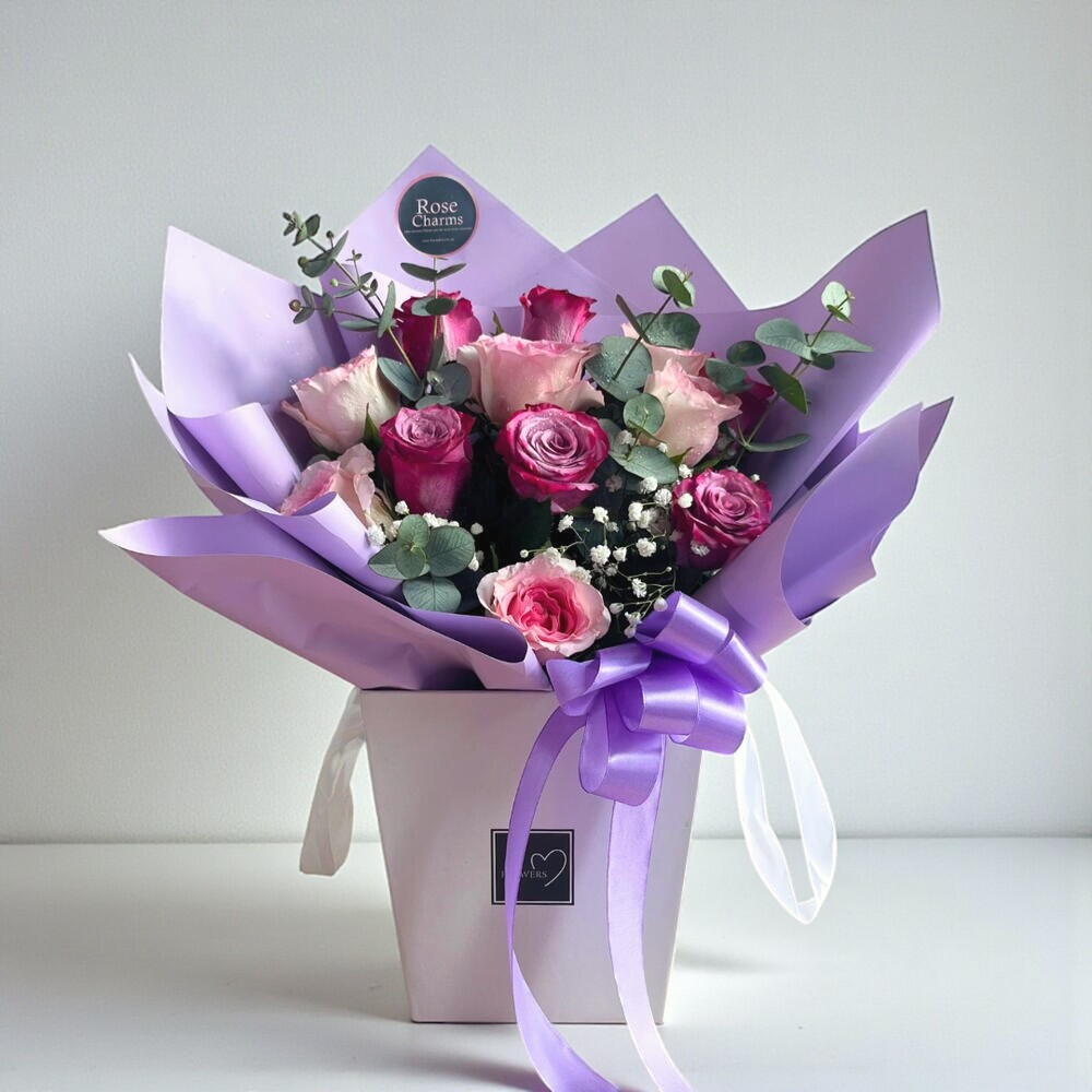 Отпразднуйте элегантность с коробкой «Зачарованные розы» — захватывающей дух композицией из 6 королевских фиолетовых роз и 6 нежных розовых. Прекрасная белая коробка, в которой этот дизайн сочетает в себе изящество, очарование и изысканность. Это идеальный подарок для выражения любви, признательности или восхищения, а также незабываемый подарок на день рождения, годовщину или просто для того, чтобы подарить кому-то чувство заботы. 💖 Скажите это розами, скажите это с любовью. Закажите сейчас, чтобы получить доставку в тот же день и порадовать их.