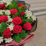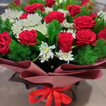 Chrysanthemum - 7 шт. asparagus - 7 шт. red roses - 14 шт.