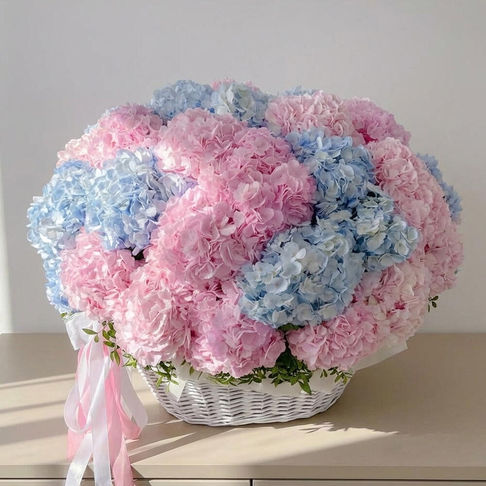 hydrangea pink - 20 шт. hydrangea blue - 20 шт. писташковый лист - 4 шт.