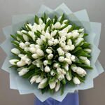 Захватывающий дух букет «Вечная чистота» состоит из 101 белоснежного тюльпана, символизирующего чистую любовь, новые начинания и вечную красоту.