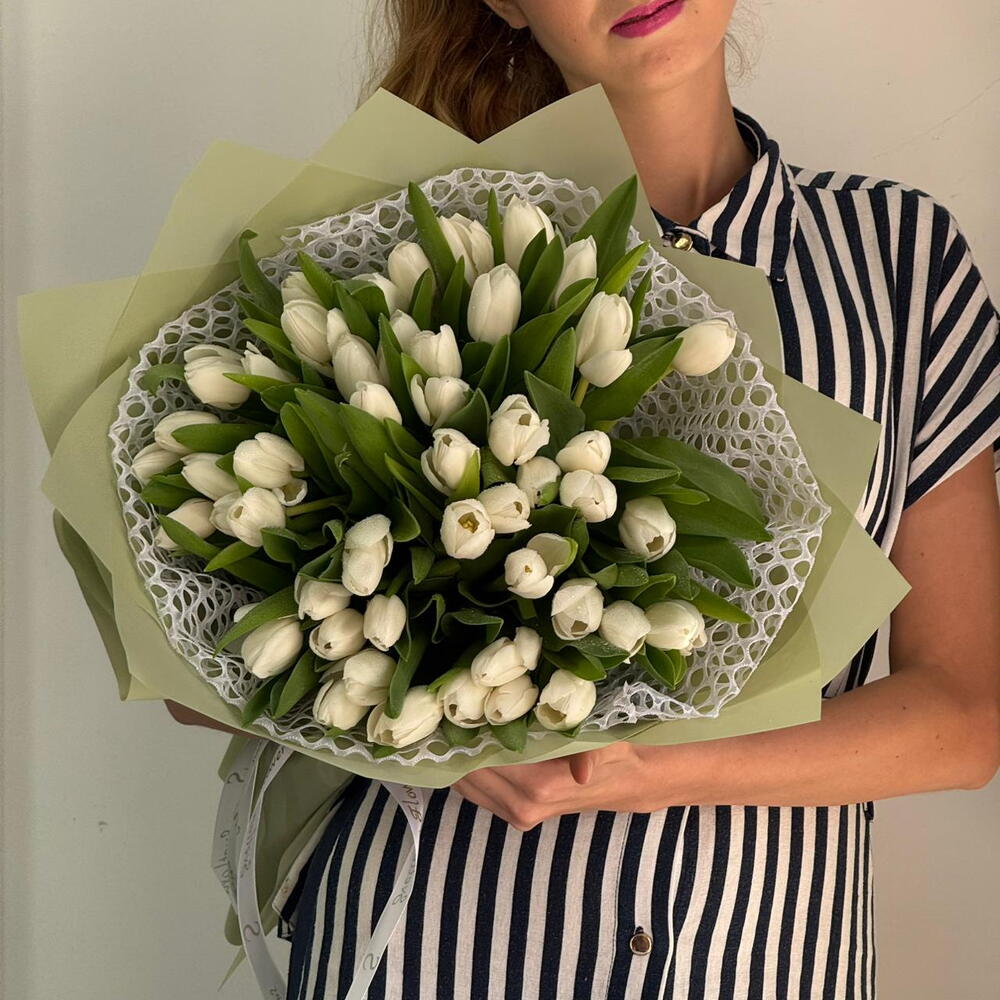 Окунитесь в мир утонченной красоты с нашим монобукетом из 51 безупречного белого тюльпана — потрясающей данью чистоте, изяществу и сдержанной роскоши. Каждый тюльпан отбирается вручную за свежесть и безупречную форму, создавая чистую, пленительную композицию, которая шепчет о вашей элегантности. Отмечаете ли вы трогательное событие или делаете тихий жест любви, этот букет — вневременное выражение: 💫 Любви и восхищения 🌿 Мирной искренности 💌 Заботливых моментов «просто так» 🎁 Минималистичного, но роскошного подарка Тщательно упакованный в бумагу нежных тонов и перевязанный атласной лентой, монобукет создаст умиротворяющую, изысканную атмосферу — идеально для любого пространства, любого сердца, любого дня. 📦 Закажите сейчас, чтобы ощутить тихую силу и неотразимое очарование 51 распустившегося белого тюльпана.