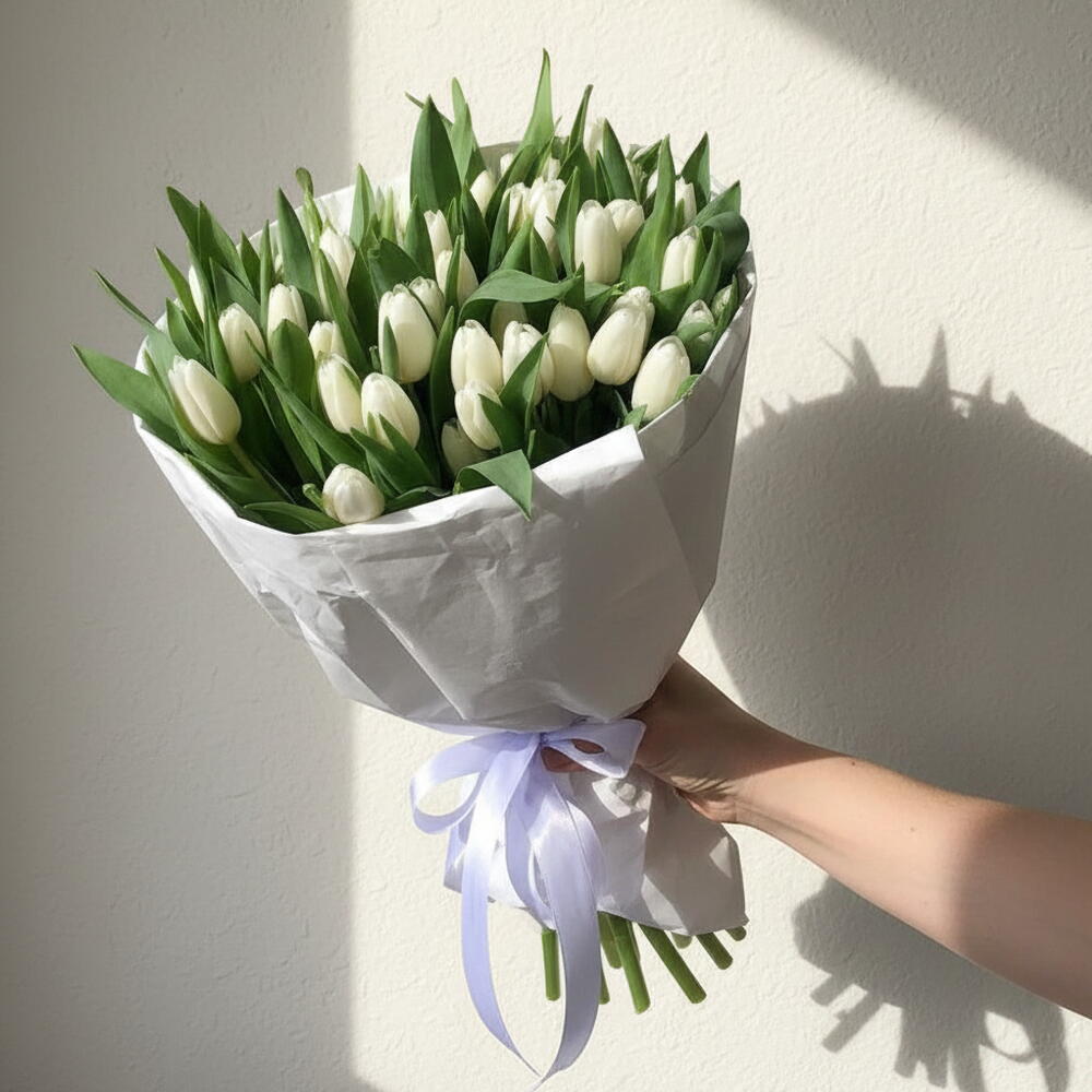 Создайте незабываемое впечатление с Eternal Snow – нашей самой великолепной композицией из белых тюльпанов, состоящей из 51 безупречных цветка, воплощающих роскошь, чистоту и непреходящую изысканность. Этот захватывающий дух букет состоит из тщательно отобранных белых тюльпанов, каждый из которых отличается безупречными лепестками и элегантной формой. Они образуют роскошный каскад, приковывающий взгляды и вызывающий восхищение. Щедрое изобилие из 51 стебля создает впечатляющее проявление природной красоты – настоящий шедевр, который превратит любое событие в незабываемое событие. Белые тюльпаны несут в себе глубокий символизм: прощение, новое начало, вечную любовь и глубокое уважение. 51 стебель Eternal Snow, символизирующий непоколебимую преданность и восхищение, передаст ваши самые искренние чувства с непревзойденной грацией и величием. Идеально для торжественных случаев: Свадьбы и свадебные букеты, которые затмят всех; Значительные годовщины (25-летие, 50-летие); Шикарные романтические жесты и предложения руки и сердца; Выразите соболезнования, чтящие дорогие воспоминания; Значительные корпоративные мероприятия и церемонии; Значительные извинения, требующие глубокого выражения; VIP-подарки и роскошные благодарности; Преображение больничных палат для выздоровления; «Вечный снег», искусно созданный нашими мастерами-флористами и представленный в изысканной минималистичной упаковке, которая подчеркивает естественную элегантность тюльпанов, станет настоящим подарком к вашей жизни. Каждый стебель тщательно подготовлен для обеспечения максимальной стойкости в вазе, что позволит этой великолепной композиции наполнить ваше пространство спокойствием до 10 дней. Это не просто букет — это величественный жест, говорящий о многом, визуальная поэма о покое и красоте, которая будет помниться еще долго после того, как опадет последний лепесток. Роскошь. Великолепие. Неподвластное времени совершенство. Закажите «Вечный снег» прямо сейчас — доступна премиум-доставка в тот же день | Сделайте этот момент незабываемым Создайте воспоминания, которые останутся с вами навсегда. Закажите 51 букет чистой элегантности прямо сейчас. Количество ограничено — забронируйте свой уже сегодня на Flowwow.