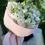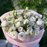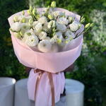 Свежий и красивый премиальный букет из эустомы в стильной упаковке.