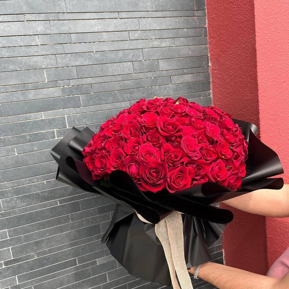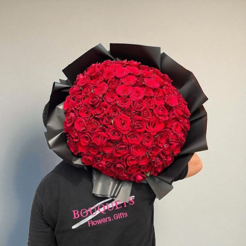 Розы Эвер Ред - 101 шт. в букете в чёрной упаковке - 12 шт.