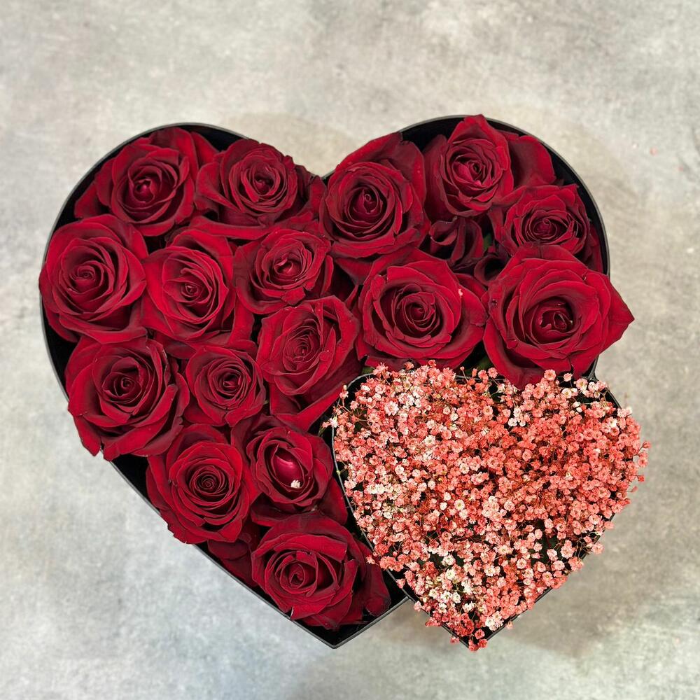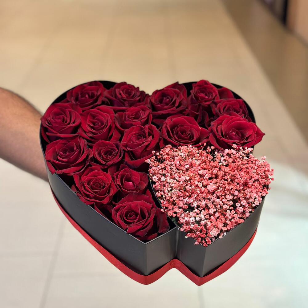 24 консервированные розы с гипсофилой в коробке 350 aed