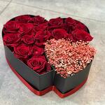 Box - 10 шт. вечные розы - 24 шт. ghpscophilla красный - 5 шт.