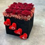 вечные розы - 24 шт. ghpscophilla красный - 5 шт. sqer коробка - 12 шт.