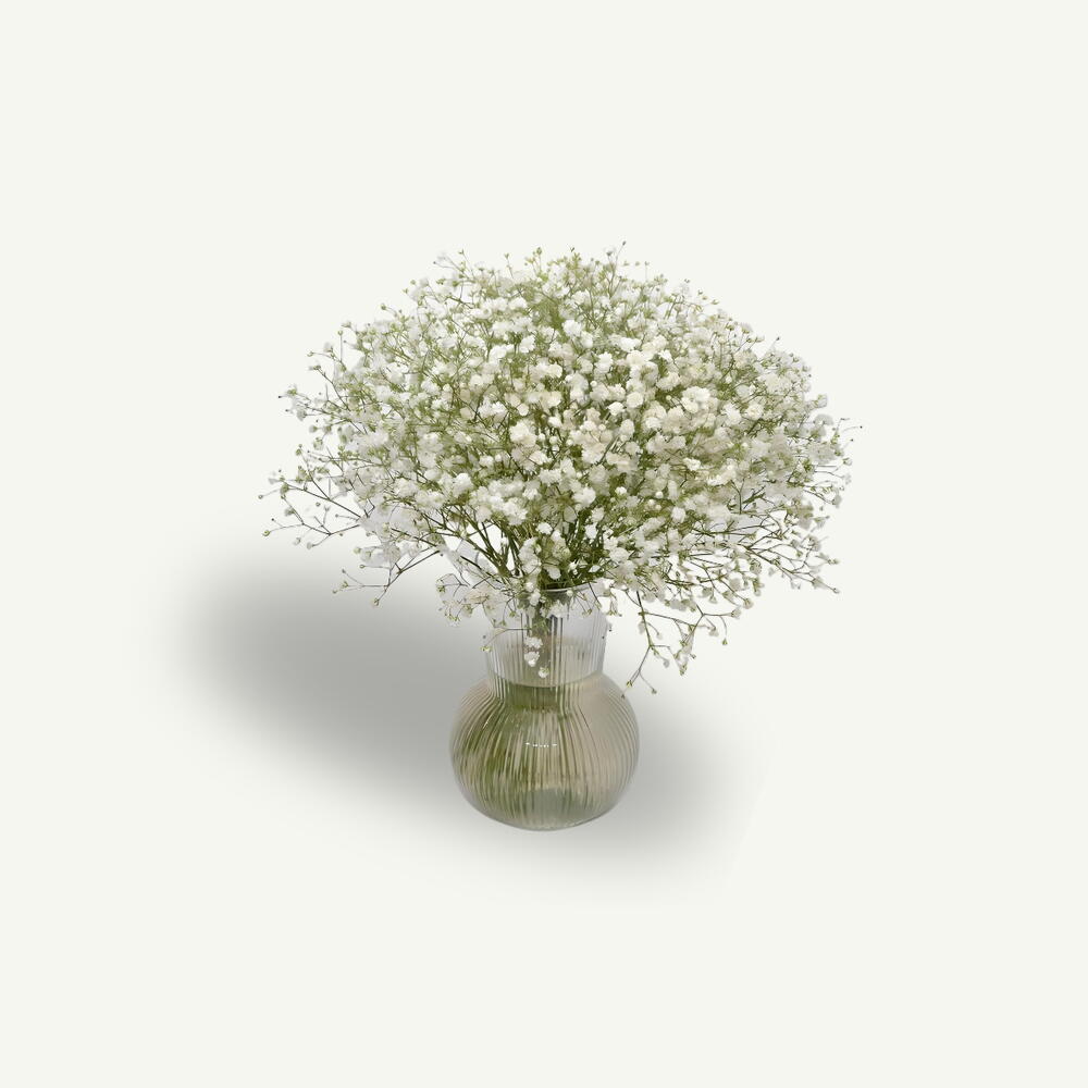 Смесь белой гипсофилы, аккуратно оформленная в прозрачной вазе высотой 17 см, для мягкого и элегантного акцента. Обратите внимание, что ваза и цветочная композиция будут упакованы отдельно.