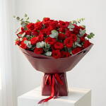 Evermore 51 красная роза с эвкалиптом В красной обертке Вдохновленный вневременной романтикой и тихой интенсивностью Evermore, этот букет состоит из пятидесяти одной бархатистой красной розы в сочетании со свежим эвкалиптом, обернутым в насыщенную красную обертку для смелого, но поэтичного завершения. Создан для любви, которая углубляется со временем, Evermore — это валентинка, выражающая преданность, верность и чувства, которые длятся вечно — романтические, сильные и незабываемые.
