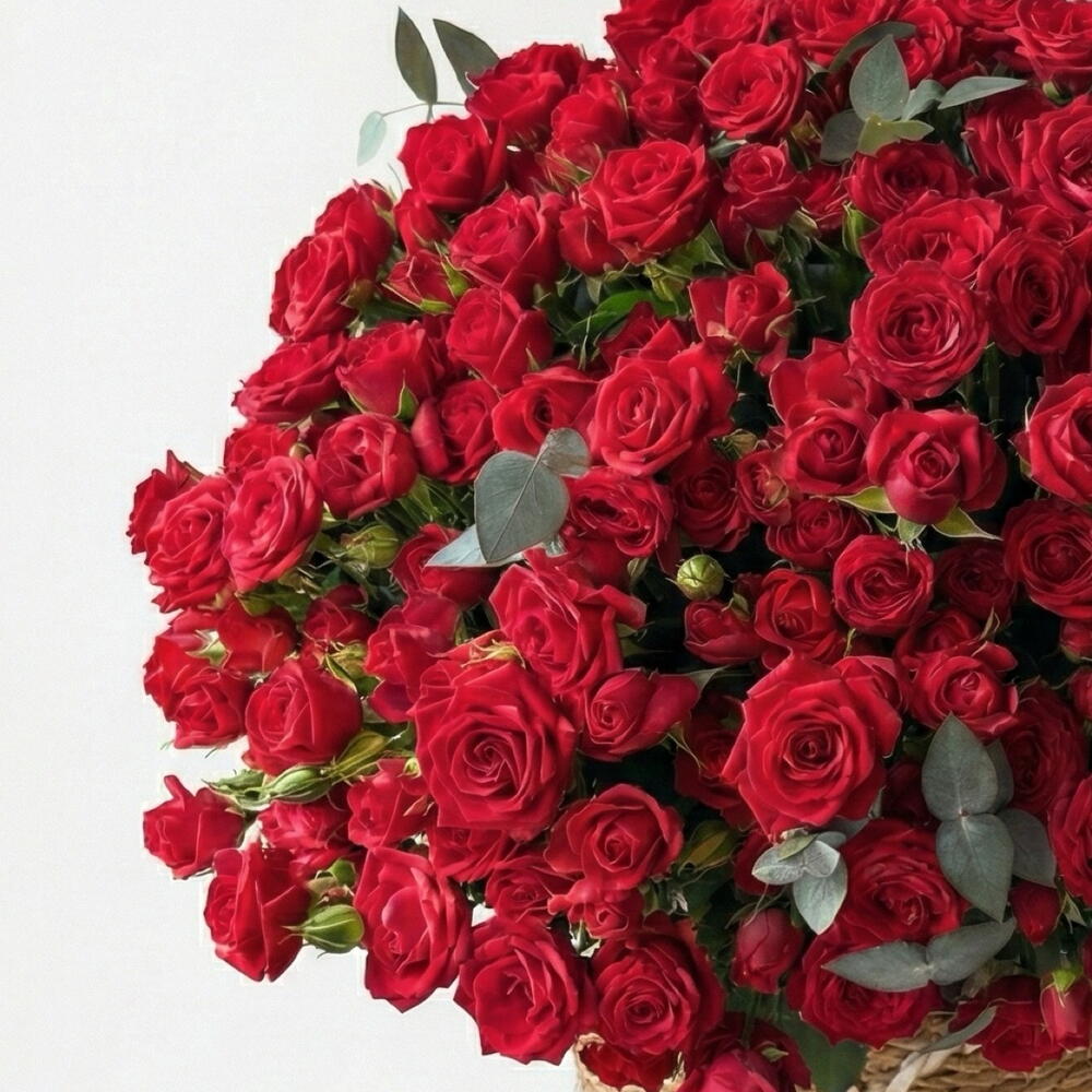 Toujours Rouge ❤️ 365 красных кустовых роз в плетеной французской корзине Toujours, что означает «всегда», в этом эффектном красном варианте становится мощным символом страсти и вечной любви. Эта великолепная композиция включает 365 насыщенно-красных кустовых роз, каждый цветок которых символизирует день непоколебимой любви, желания и преданности. Элегантно оформленная в плетеной французской корзине, она сочетает в себе драматическую интенсивность и вневременную изысканность. Идеально подходит для незабываемых признаний — Toujours Rouge создан для Дня святого Валентина, предложений руки и сердца, юбилеев или моментов, требующих чего-то поистине необыкновенного. Насыщенные красные оттенки в сочетании с классической корзиной вызывают ассоциации с парижской романтикой, смелыми эмоциями и вечной преданностью. Атмосфера: Интенсивная романтика • Французская роскошь • Бесконечная страсть Любовь, обещанная каждый день, навсегда.