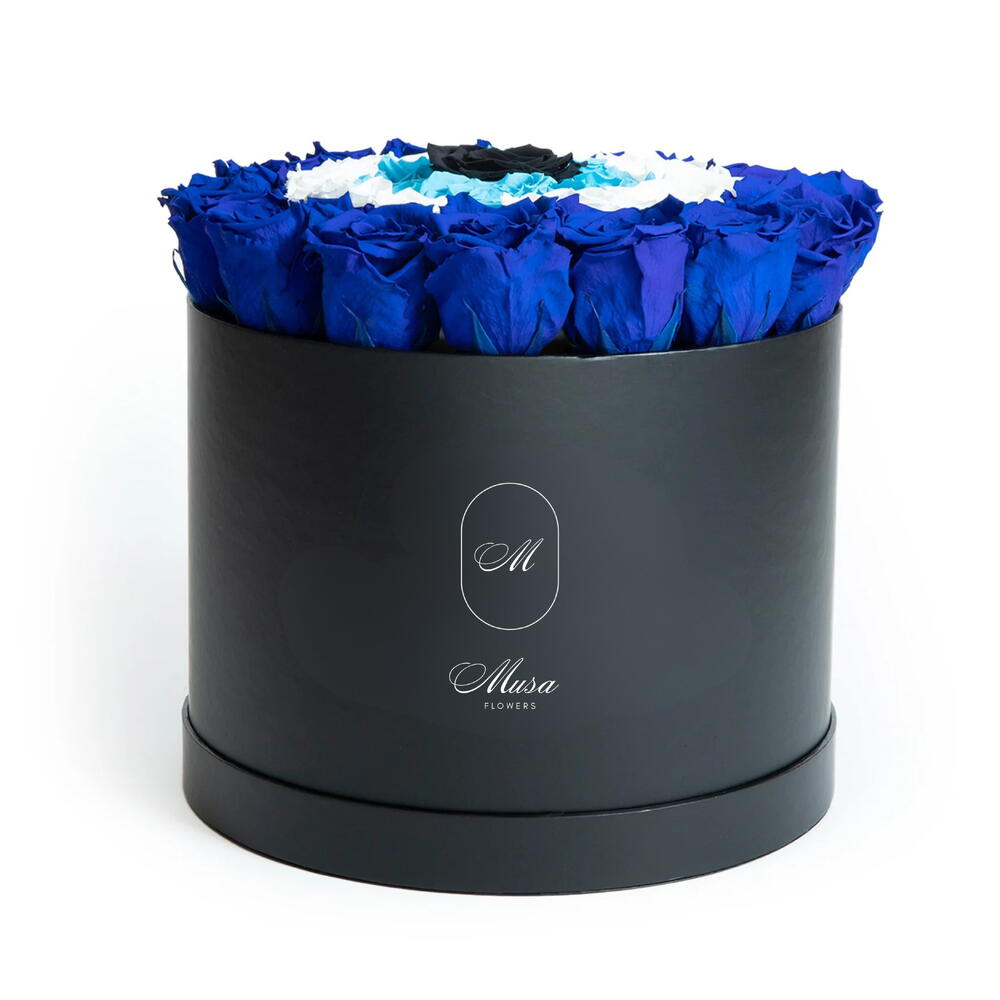 Наслаждайтесь богатой эстетикой нашего ассортимента «Цветы в коробке». Эта элегантная композиция состоит из 15 тёмно-синих роз, означающих таинственное очарование, и 10 безупречно белых роз — истинный символ чистоты. Элемент неожиданности привносят 5 завораживающих синих роз, воплощающих истинную сущность современной красоты. И, наконец, но отнюдь не в последнюю очередь — наша единственная чёрная роза, вызывающая ощущение глубокой таинственности. Каждая роза в наборе тщательно отобрана вручную, чтобы создать поразительное сочетание цветов и эмоций, предлагая уникальное выражение чувств. Идеальный подарок для любых случаев или изысканное дополнение к любому интерьеру.