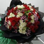 Limonium - 7 шт. red baby rose - 13 шт. white baby rose - 10 шт.