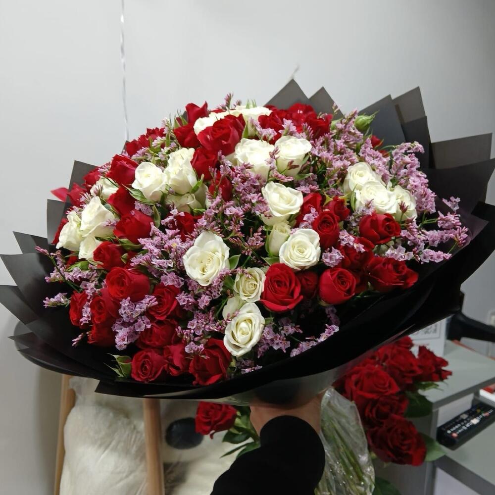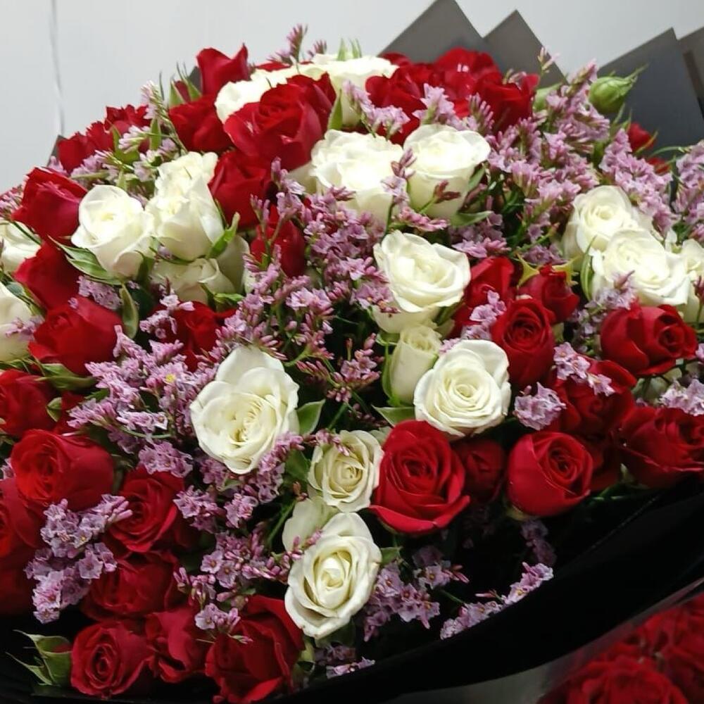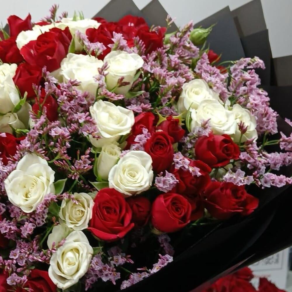 Limonium - 7 шт. red baby rose - 13 шт. white baby rose - 10 шт.