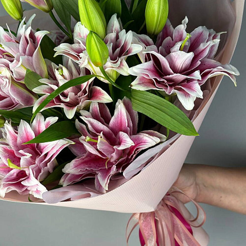 Букет пышных, необычных махровых лилий. Совершенство для самых взыскательных. Удивите и порадуйте своих близких!