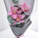 Превратите каждый жест в изящное высказывание с Exotic Petals, утончённым букетом из трёх грациозных орхидей цимбидиума, дополненных свежей зеленью эвкалипта. Эта компактная, но выразительная композиция передаёт очарование минимализма и роскошное ощущение редких цветов. Упакованный в гладкую бумагу серых оттенков и перевязанный мягкой розовой лентой, он станет идеальным подарком для тех, кто ценит красоту с современным акцентом. Рекомендации по уходу: Поставьте букет в чистую вазу с прохладной водой. Держите его в хорошо проветриваемом месте, вдали от прямых солнечных лучей и источников тепла. Меняйте воду каждые два дня и подрезайте стебли под углом, чтобы продлить свежесть орхидей и зелени.