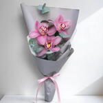 Ribbon - 1 шт. Eucalyptus - 3 шт. cymbidium orchid - 3 шт. wrapping paper - 1 шт.