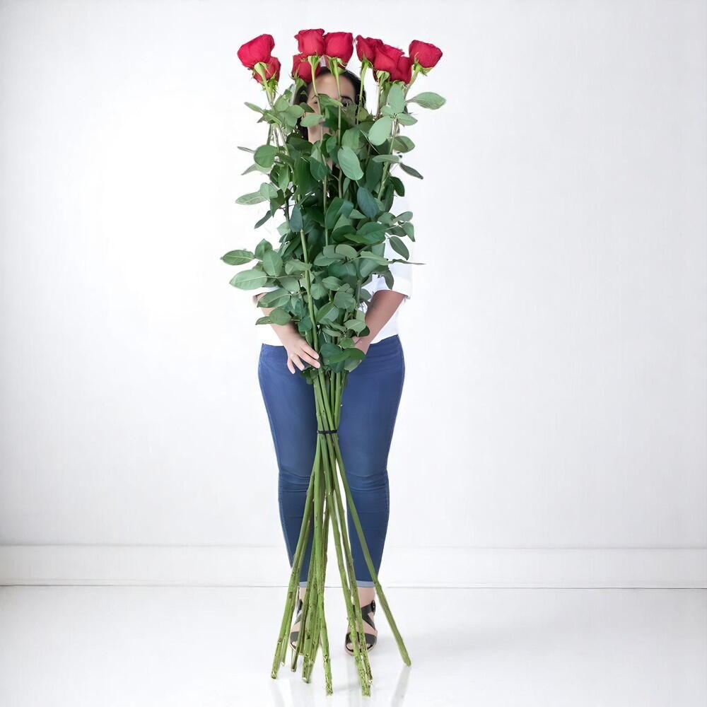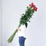 Произведите незабываемое впечатление с букетом красных роз на удлиненном стебле, состоящим из 11 премиальных красных роз высотой 160 см, элегантно перевязанных атласной лентой. Эти величественные цветы – настоящее воплощение романтики и роскоши, идеально подходящее для самых торжественных моментов в жизни. Празднуете ли вы предложение руки и сердца, годовщину или просто хотите самым смелым образом признаться в любви, этот выразительный букет станет идеальным жестом. Каждая роза тщательно отобрана за свой насыщенный красный оттенок, безупречные лепестки и исключительную высоту. Этот букет высотой 160 см и шириной 30 см идеально подходит для эффектных выходов, оформления роскошных мероприятий или трогательных сюрпризов, требующих внимания. Рекомендации по уходу: Поставьте розы в большую высокую вазу с чистой водой, убедившись, что стебли полностью погружены в воду. Подрезайте стебли под углом каждые два дня, чтобы они лучше впитывали воду. Храните букет в прохладном помещении, вдали от прямых солнечных лучей и источников тепла. Чтобы сохранить свежесть надолго, меняйте воду каждые 48 часов и удаляйте увядшие листья и лепестки.