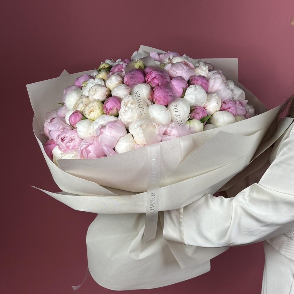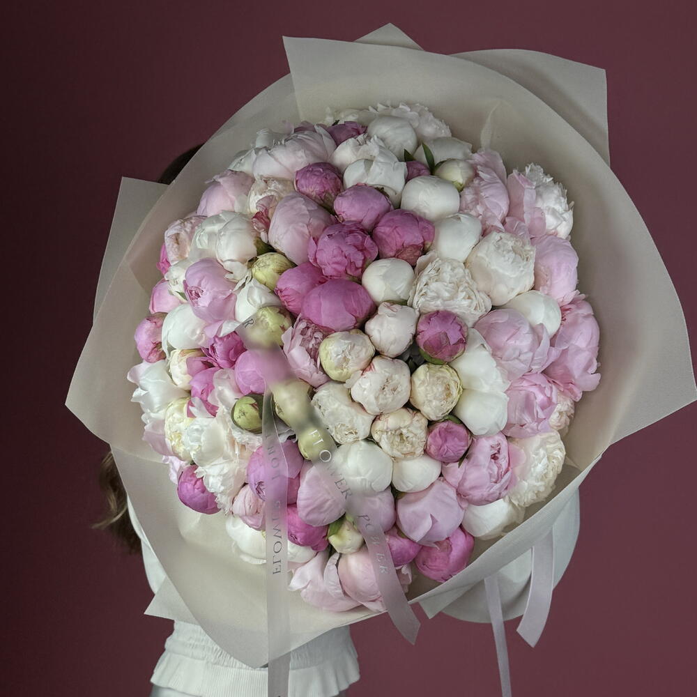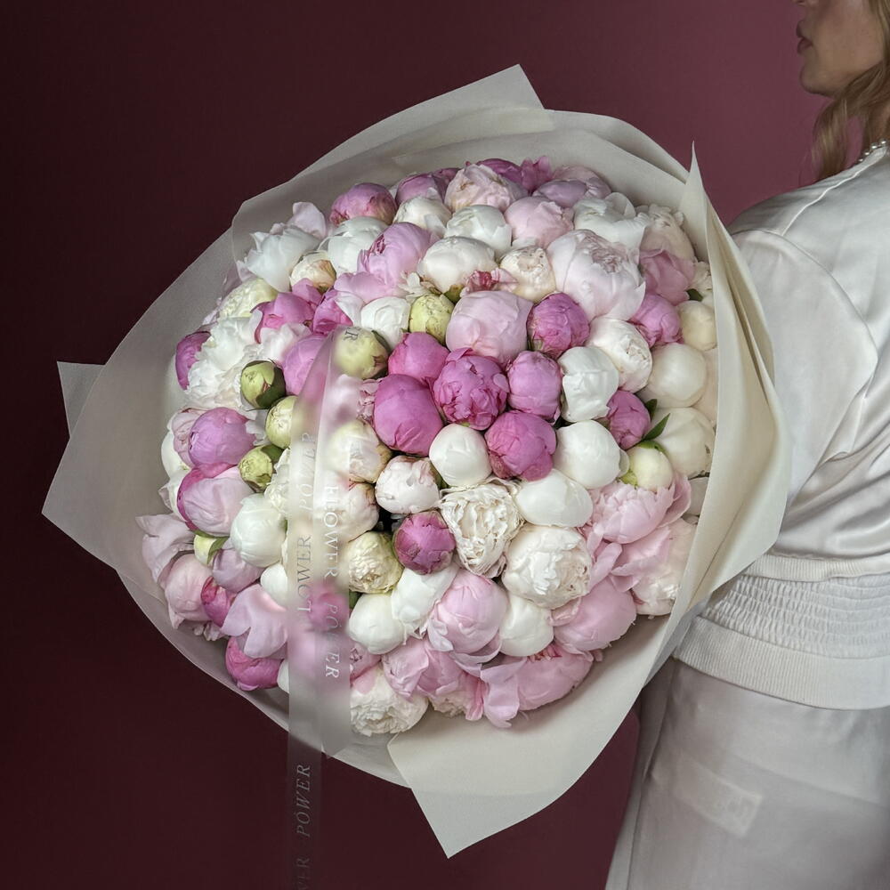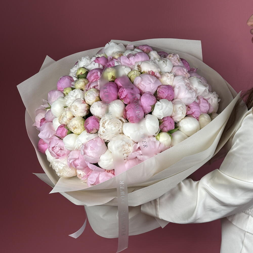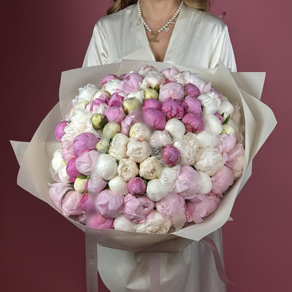 Роскошь пионов: букет WOW размера из 100 розовых и белых пионов