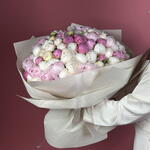 Великолепный букет размера WOW, состоящий из ста пышных, полностью раскрытых розовых и белых пионов. Эта колоссальная композиция — высшее проявление роскоши и глубокой романтической преданности, сочетая чистоту белого с изяществом и нежностью розового. Это незабываемый, величественный жест, идеальный для знаменательной годовщины, по-настоящему особенного предложения или чтобы отправить непревзойдённые поздравления с днём рождения, которые осыплют получателя почётом и удачей.