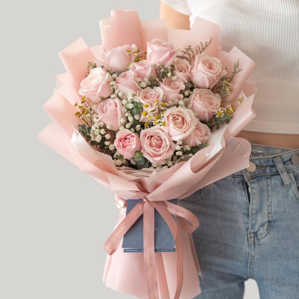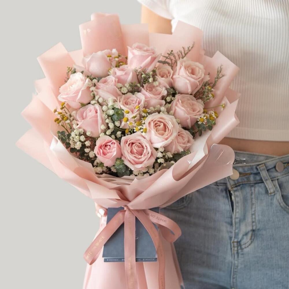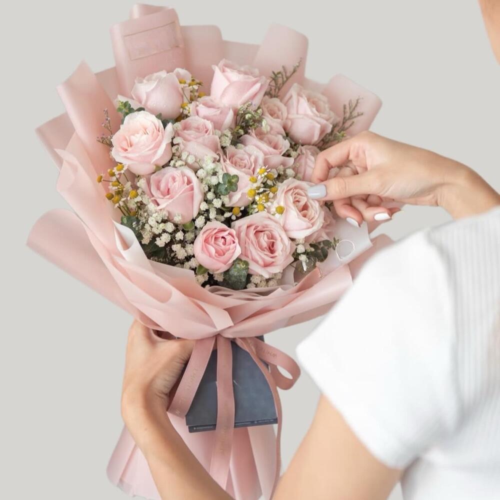 Gypsophila - 10 шт. blush pink rose - 15 шт.