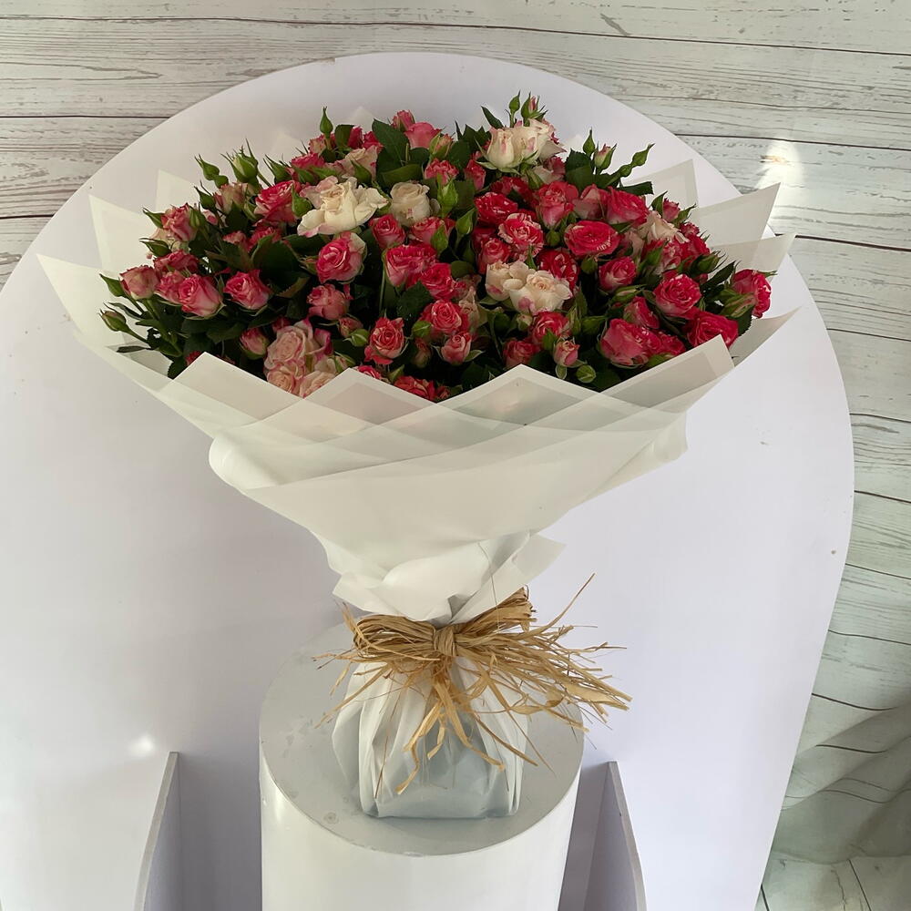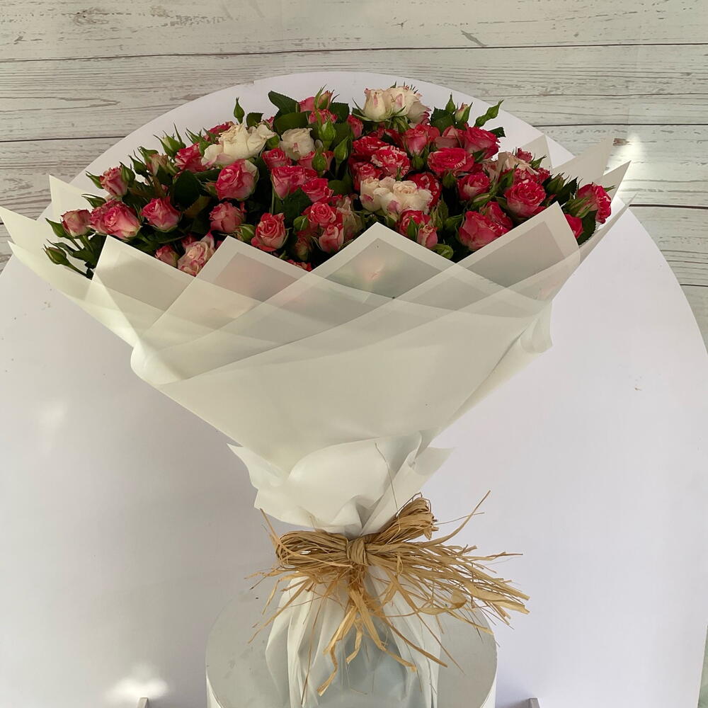 Ribbon - 2 шт. wrapping paper - 7 шт. рефлекс беби роуз - 12 шт. флористическая пена - 1 шт. фейерверк бэби роза - 15 шт.