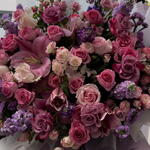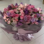 Большой букет фиолетовых и розовых цветов