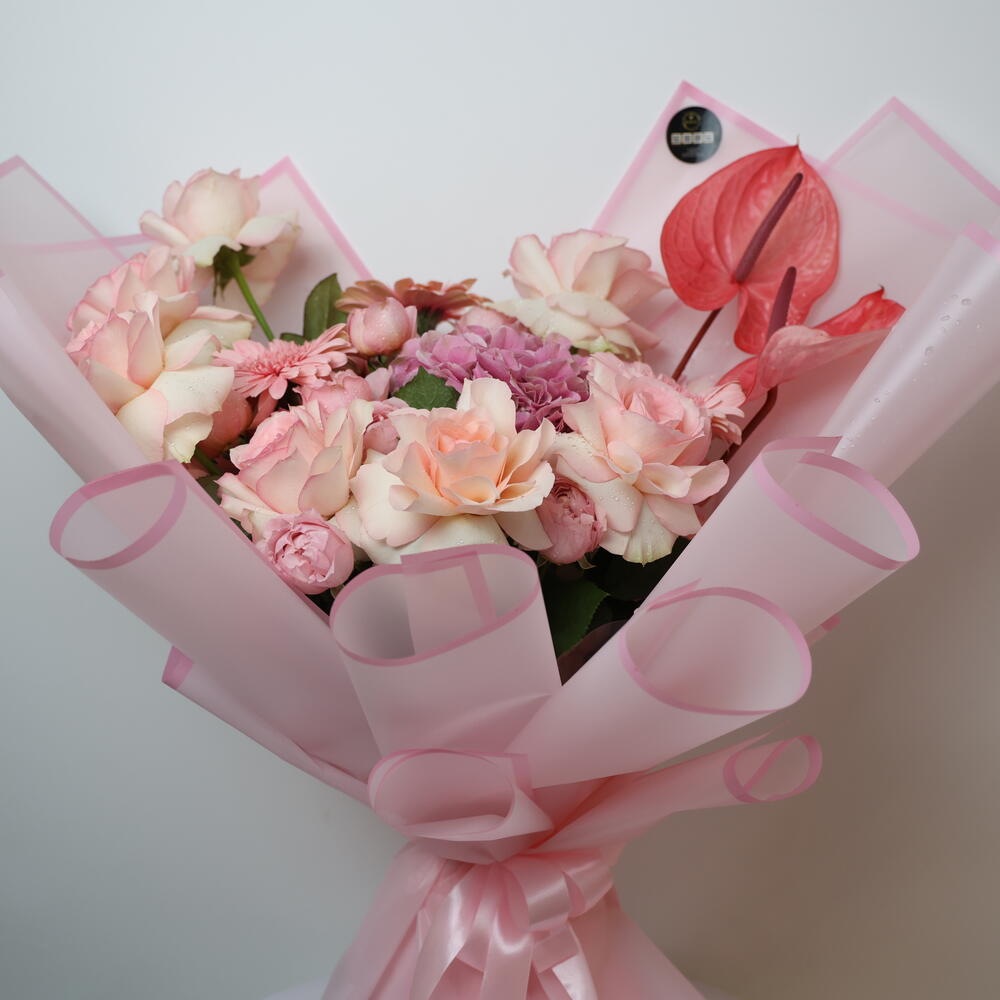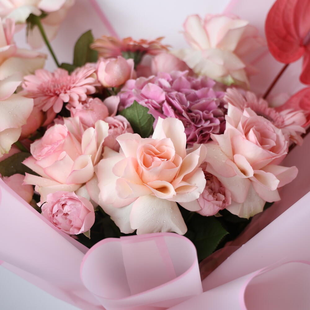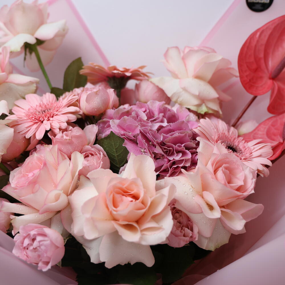 Окунитесь в мир романтики и сияния с нашим букетом Blush Affair — пленительной композицией из пышных розовых гортензий, ярких розовых гербер, чувственных антуриумов, кустовых роз и богатой красоты роз Pink Experience. Этот букет — воплощение нежной страсти, игривой элегантности и нотки дерзкого очарования. От первых свиданий до мгновений, которые навсегда останутся с вами, — это идеальный подарок, когда ваша история любви заслуживает смелости, красоты и беззастенчиво розового цвета. Для той, кто заставляет ваше сердце биться чаще... и краснеть.