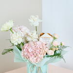 Подарите любимому человеку непревзойденное наслаждение этой роскошной цветочной композицией. Этот букет, сочетающий нежные пастельные оттенки с нежными розами и цветущими гортензиями, идеально подойдет для любого особого случая. В сочетании с коробкой роскошных шоколадных конфет Godiva Masterpieces эта композиция обещает передать элегантность и изысканность в одном потрясающем оформлении. Упакованный в мятно-зеленый цвет с очаровательным бантом из бечевки, этот подарок обязательно произведет неизгладимое впечатление. Информация о подарке: Гортензия Розы Кустовые розы Аспарагус Godiva