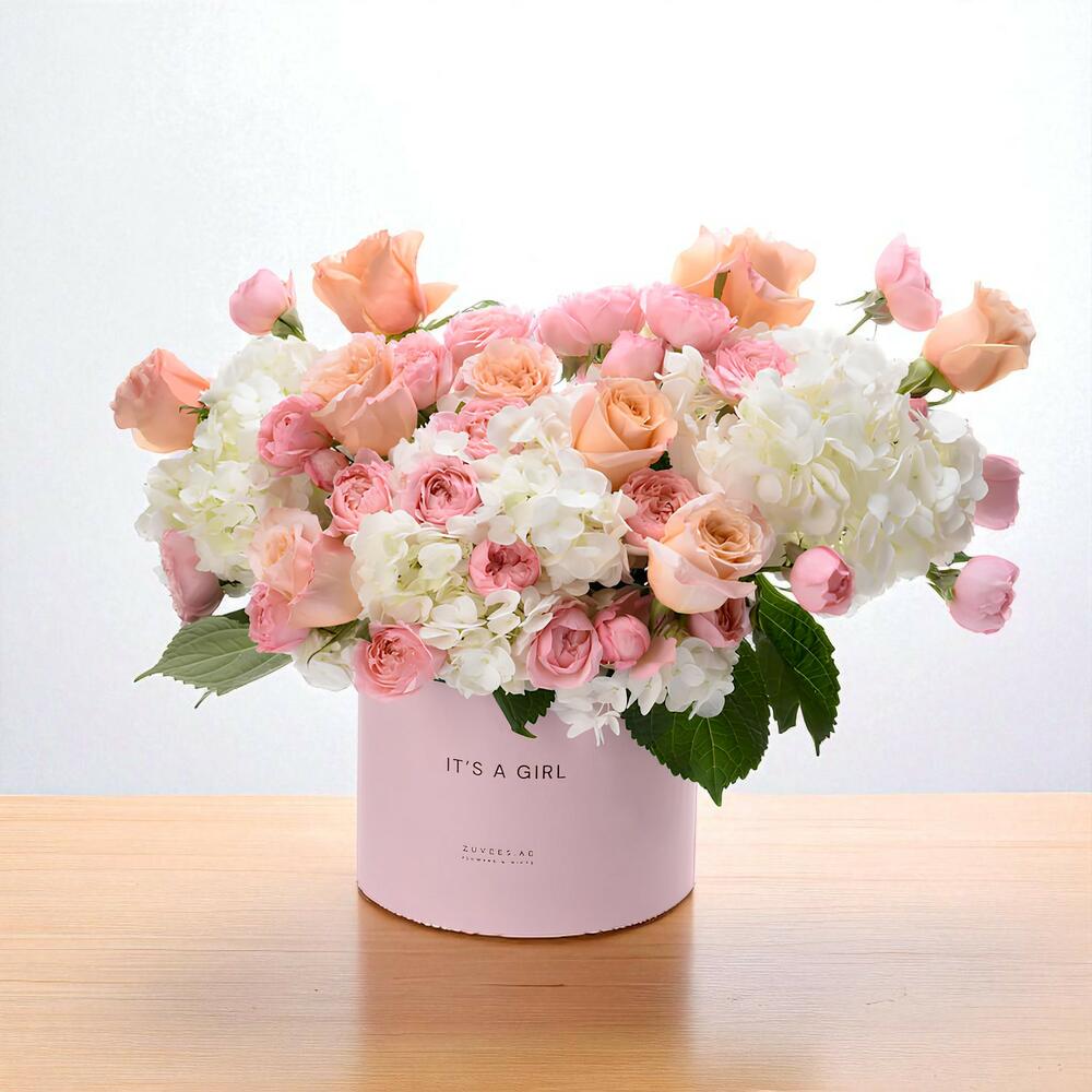 Ощутите вечное очарование Floral Odyssey Its a Girl Box, роскошной цветочной композиции, созданной для празднования новых начинаний и радостных моментов. Изысканно оформленная в элегантной розовой коробке, украшенной трогательной надписью Its a Girl розового цвета, эта композиция излучает счастье и тепло.