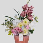 Элегантная композиция с искусственной орхидеей и смешанными цветами в декоративном горшке. Создана, чтобы привнести мягкий, современный и естественный штрих в любое помещение. Долговечная и не требующая ухода.