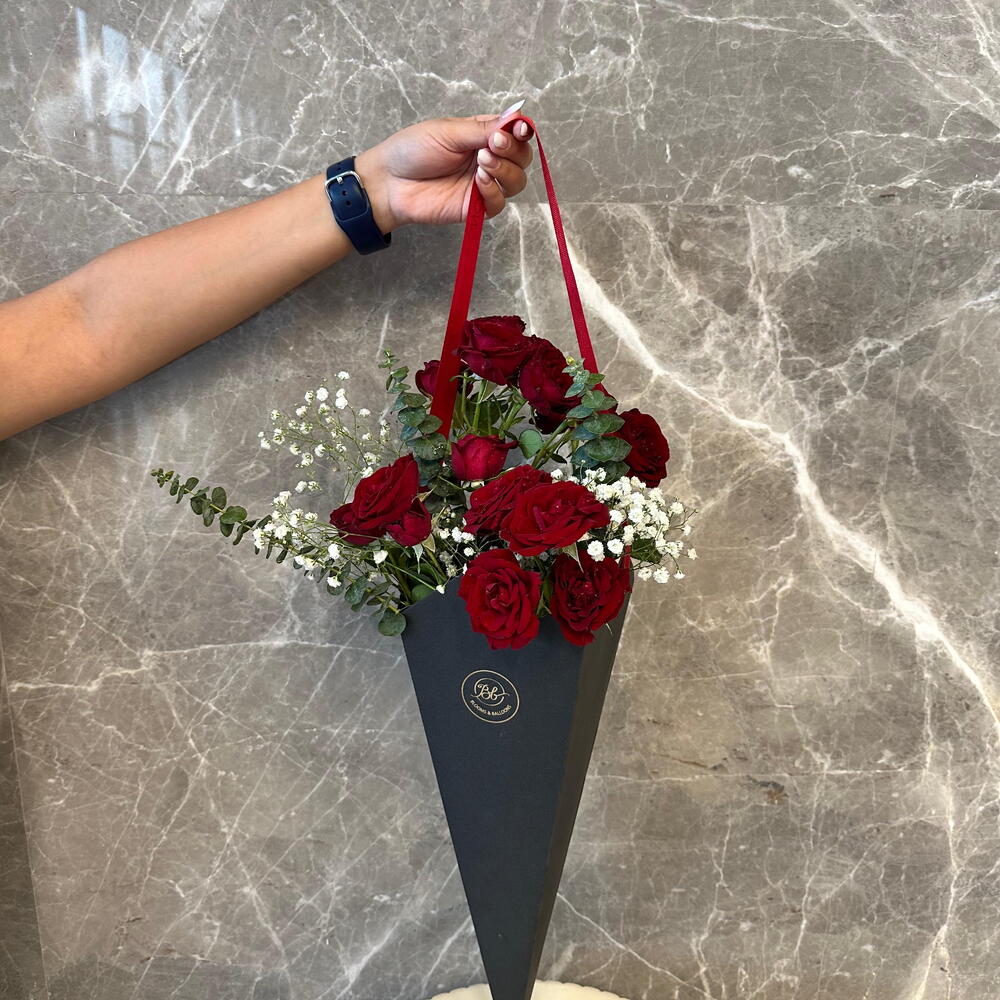 Цветочный конус с красными розами