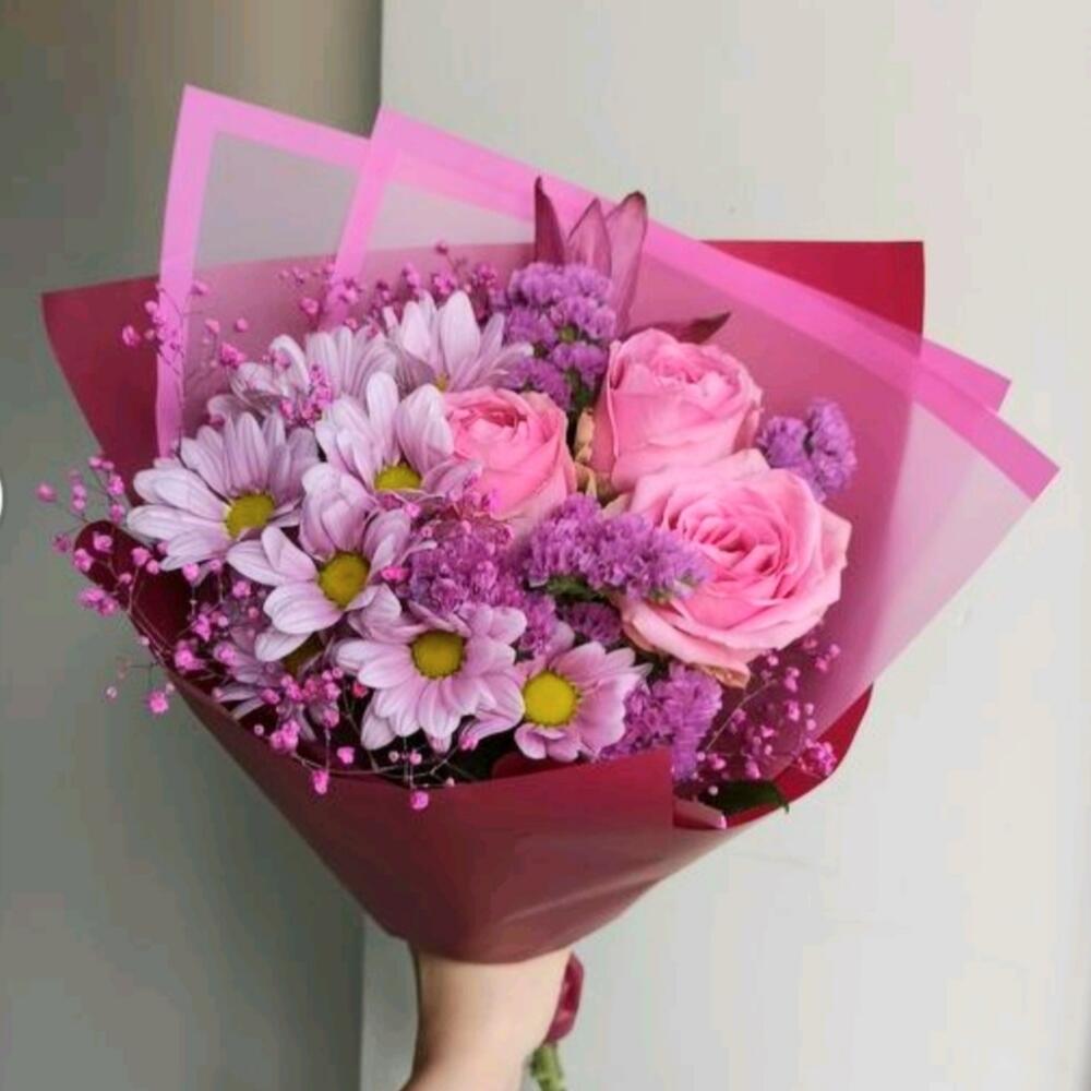Limonium - 3 шт. Pink rose - 3 шт. chrysanthemum bush - 2 шт.